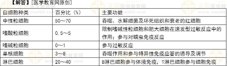 1.【问题】白细胞的种类及其主要功能是什么?