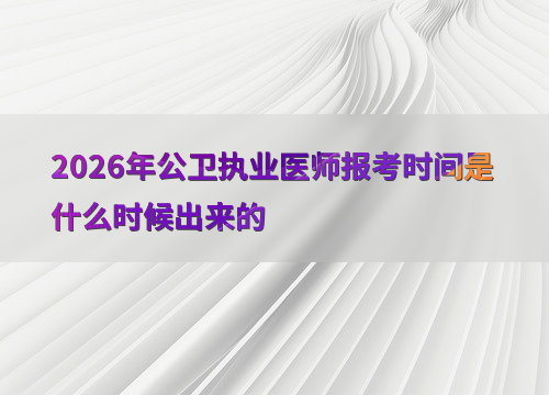 2026年公卫执业医师考试报名预计在1月至2月进行,参考近年安排(如2025年为2月8日—2月21日),建议考生提前关注国家医学考试网(www.nmec.org.cn)公告。