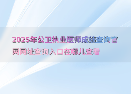 2025年公卫执业医师综合考试成绩预计在9月公布,考生可通过国家医学考试网(http://www.nmec.org.cn/)首页“成绩查询入口”进行登录查询。