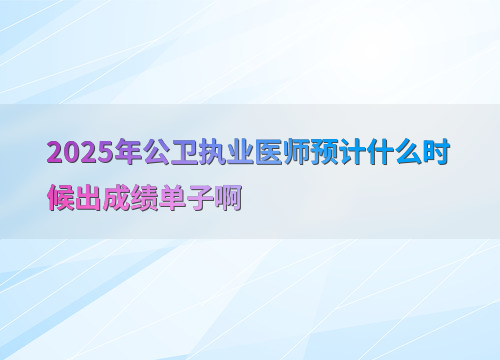 根据往年规律,2025年公卫执业医师综合考试成绩预计在9月公布,通常为考后1个月左右。