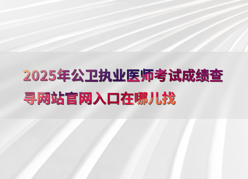 2025年公卫执业医师综合考试成绩预计在9月公布,考生可通过国家医学考试网(http://www.nmec.org.cn/)首页“成绩查询入口”进行登录查询。