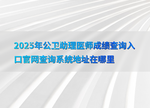 根据历年规律,2025年公卫助理医师综合考试成绩预计在9月公布,通常为考后约1个月。