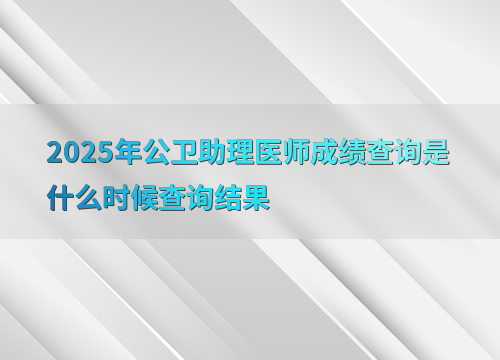 2025年公卫助理医师综合考试成绩已于9月23日公布。