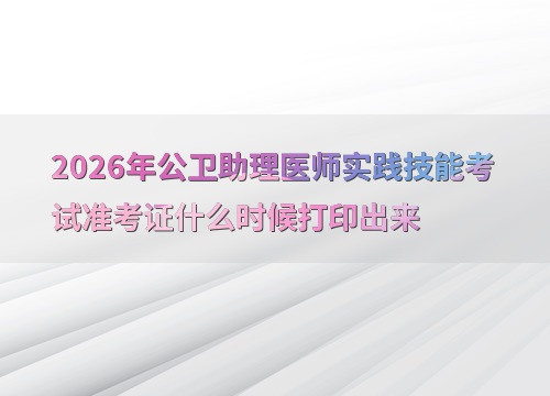 2026年公卫助理医师实践技能考试定于6月6日至7日举行,准考证打印时间因地区而异,通常在考前1-2周开放打印。