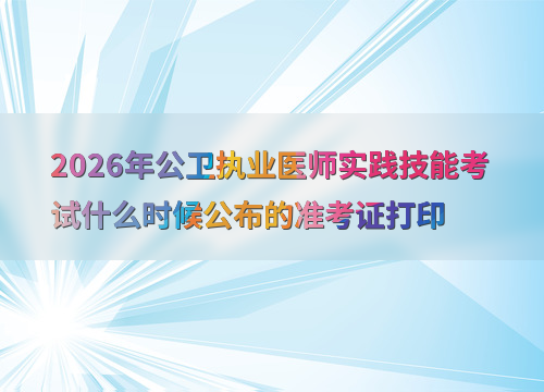 2026年公卫执业医师实践技能考试定于6月6日至7日举行,准考证打印时间因地区而异,一般在考前1-2周开放。
