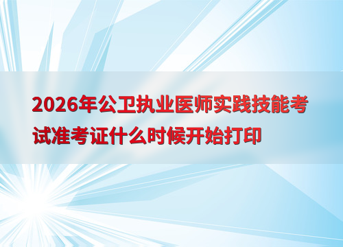 2026年公卫执业医师实践技能考试定于6月6日至7日举行,准考证打印时间因地区而异,通常在考前1-2周开放。