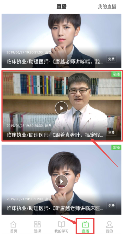 3、点击“直播”,选择本次直播进入即可。