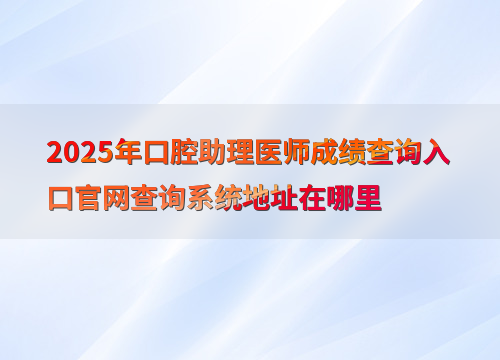 2025年口腔助理医师综合考试成绩预计在9月公布,考生可通过国家医学考试网(http://www.nmec.org.cn/)查询。