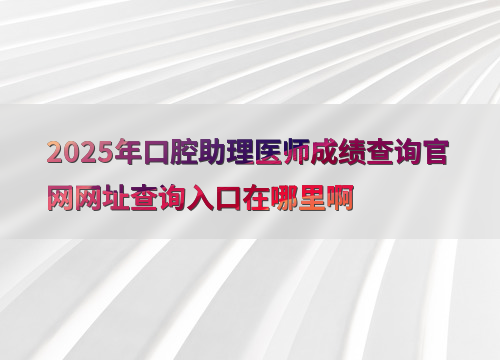 2025年口腔助理医师综合考试成绩已于9月23日公布,考生可通过国家医学考试网(http://www.nmec.org.cn/)首页“成绩查询入口”快捷界面进行查询。