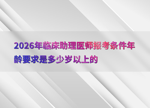 2026年临床助理医师考试报名没有明确的年龄上限规定,但考生需满足学历和试用期条件。