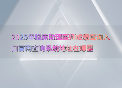 2025年临床助理医师综合考试成绩预计在9月公布,参考近年规律(2024年9月13日、2023年9月19日),考后约1个月可查。
