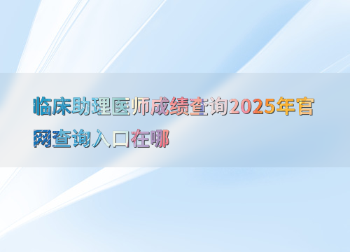 2025年临床助理医师综合考试成绩预计在9月公布,参考近年时间规律(如2024年9月13日、2023年9月19日),考生可提前准备查分。