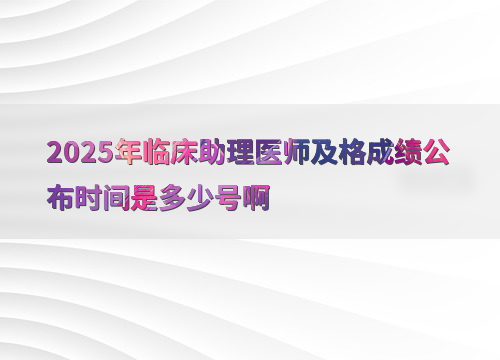 2025年临床助理医师综合考试成绩预计在9月公布,参考近年数据,一般为考后约1个月。