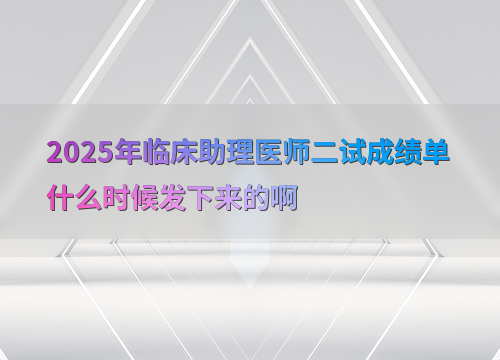 2025年临床助理医师二试成绩预计在12月初公布,参考近年时间:2024年11月30日、2023年12月8日,考生可提前做好查分准备。