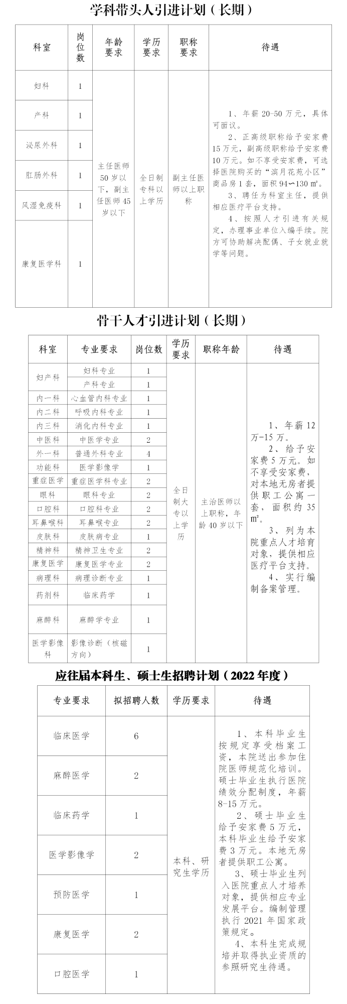 请有意向且符合条件者将个人简历发送至邮箱简历标题为“应聘科室岗位+姓名”。简历资料包括:个人简历、身份证、毕业证、学历验证报告、专业技术资格证书、进修证书、专科认证、论文及科研成果或发明专利等证书复印件。也可以来院实地考察,向院办公室(住院二部609室)提交相关应聘资料。