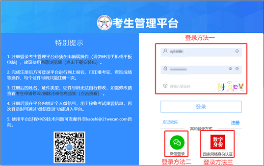 考生报名前须完成考生管理平台注册和基本信息填报,具体流程详见《考生管理平台注册须知》(点击查看)。完成后,方可登录考生管理平台进行考试报名。