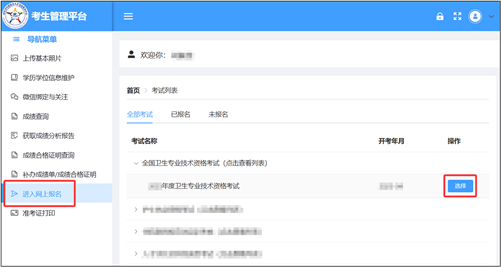 1.点击【进入网上报名】,选择“2026年度卫生专业技术资格考试”。