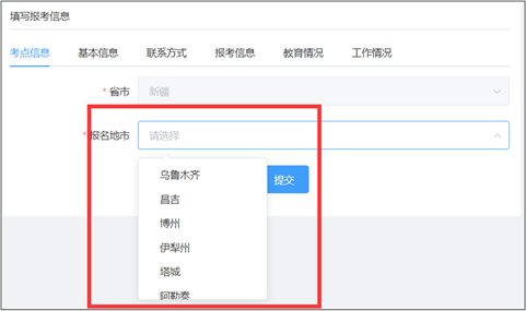 (1)下拉选择“报名地市”。