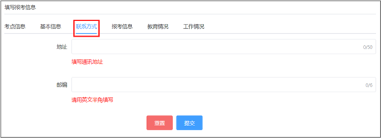 进入填写报考信息页面,系统将默认显示上一年度的报名信息。考生须逐页核对基本信息、联系方式、报考信息、教育情况、工作情况,可根据本年度报名的实际情况修改,确认无误后点击提交。