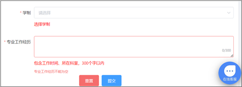 依次填写“学制”、“专业工作经历”。