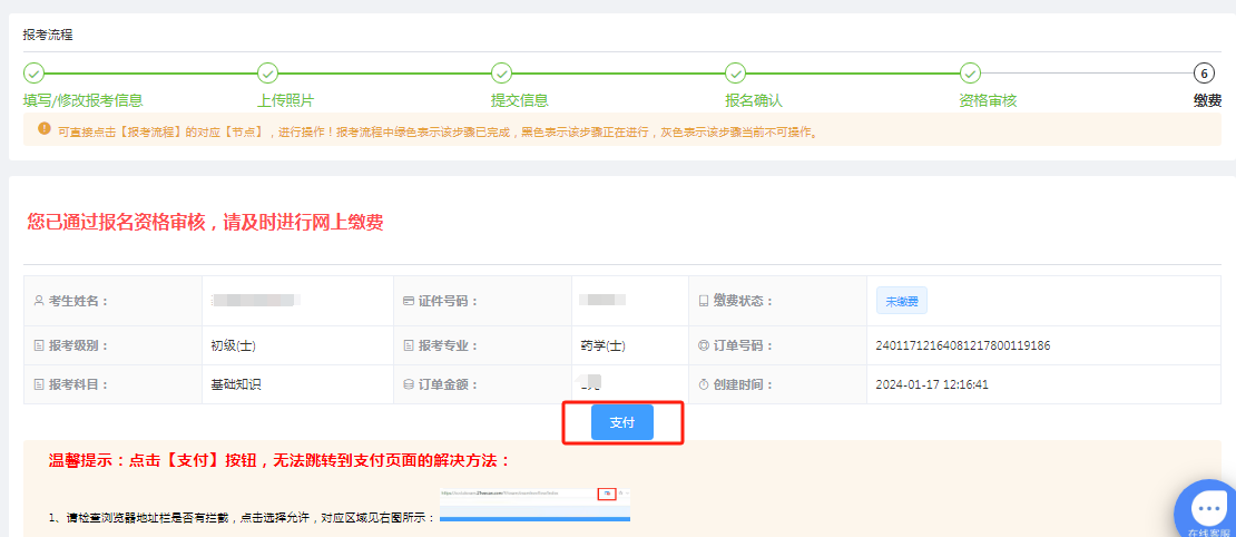 1.考生在报名网站(中国卫生人才网)点击报名的考试项目后,进入报考流程缴费页面进行支付。