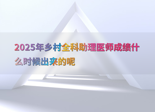 2025年乡村全科助理医师综合考试成绩预计在9月公布,参考近年时间规律,考后约1个月左右可查。