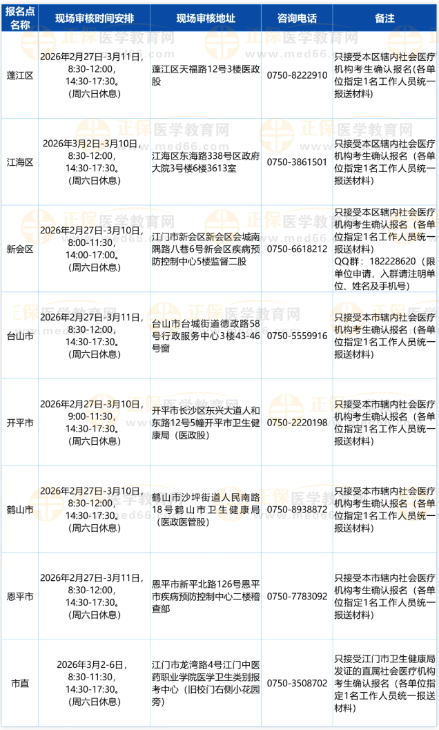 广东江门考点2026年医师资格考试报名&审核安排及具体要求已公布!请相关考生及时查看,按时完成报名审核!