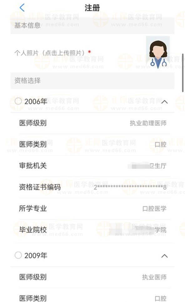 2、若有多个资格,选择要执业注册的资格。(只有一个医师资格请忽略此步骤)