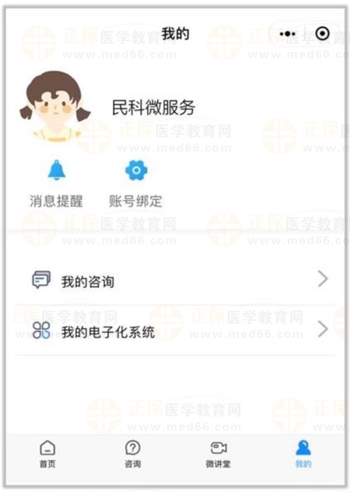 1、在民科微服务小程序【我的】中,点击【我的电子化系统】