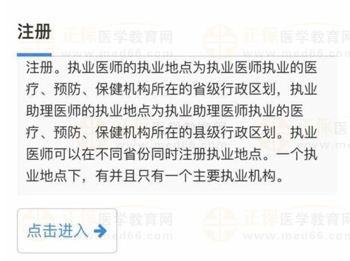 页面会跳转到当前助理医师注册地点(如下图),点击进入。
