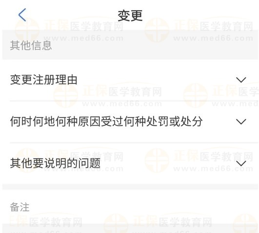 2、选择要变更的执业信息,点击[开始变更]按钮。