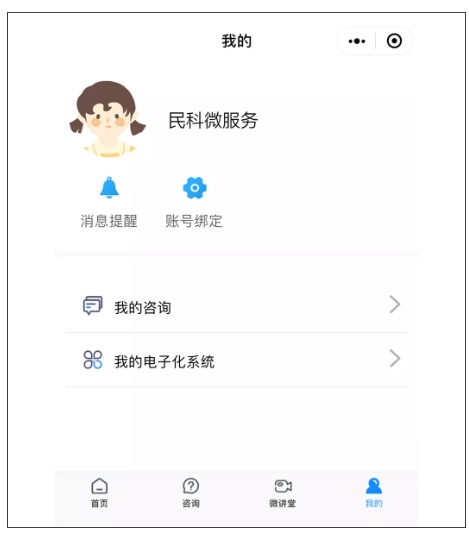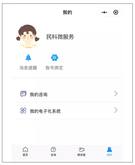 ②在民科微服务小程序【我的】中,点击【我的电子化系统】;