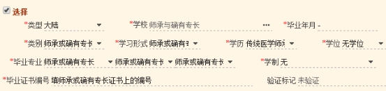 2.要求毕业学校名称与毕业证书上名称完全一致,工作单位名称和医疗机构执业许可证上名称完全一致,如果选项中查找不到需增补,方法如下: