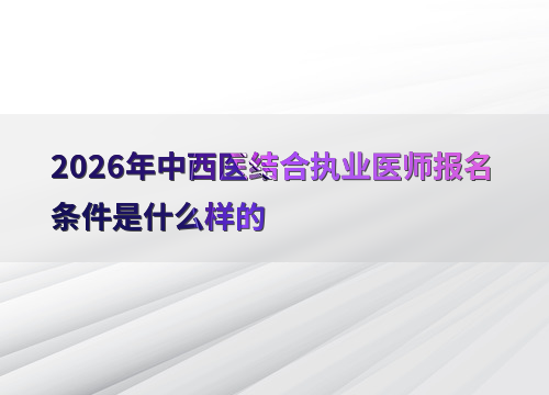 2026年中西医结合执业医师考试报名预计在1-2月进行,考生需完成网上报名和现场确认两步。