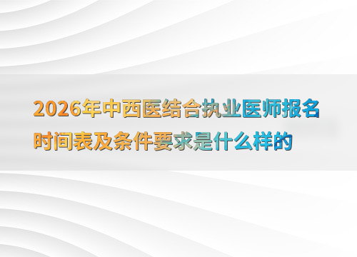 2026年中西医结合执业医师考试报名预计在1月至2月进行,参考近年时间(如2025年为2月8日至2月21日),建议考生提前关注国家医学考试网公告。