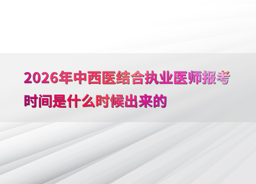 2026年中西医结合执业医师报考时间是什么时候