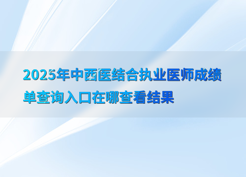 2025年中西医结合执业医师综合考试成绩预计在9月公布,参考近年时间规律(如2024年9月13日、2023年9月19日),建议考生提前准备准考证和身份证信息,以便及时查询。