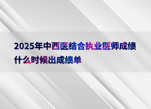 2025年中西医结合执业医师综合考试成绩预计在9月公布,参考近年时间规律(如2024年9月13日、2023年9月19日),考后约1个月可查。