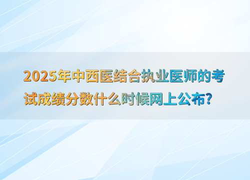 2025年中西医结合执业医师综合考试成绩预计在9月公布,参考近年数据,考后约1个月左右出分。