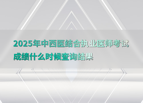 2025年中西医结合执业医师综合考试成绩预计在9月公布,参考近年数据,一般为考后1个月左右。
