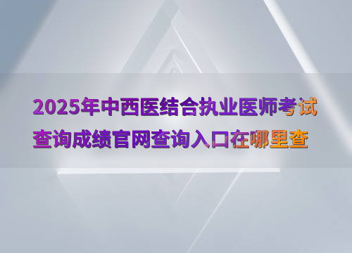 2025年中西医结合执业医师综合考试成绩于9月23日公布,较往年提前约一周。
