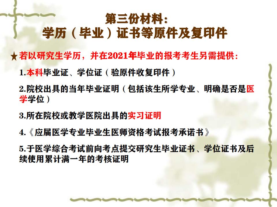 研究生应届毕业生2021年参加医师资格考试报名的条件,苏州市2021年医师资格考试报名园区医考现场审核注意事项大家都在关注,医学教育网编辑为您整理研究生应届毕业生2021年参加医师资格考试报名的条件如下。