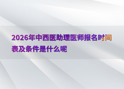 2026年中西医助理医师考试报名预计在1月至2月进行,参考2025年报名时间为2月8日至2月21日,建议考生提前关注国家医学考试网(www.nmec.org.cn)公告。