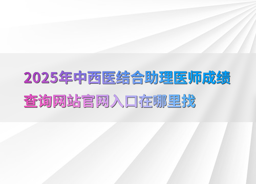 2025年中西医结合助理医师综合考试成绩于9月23日公布,考生可通过国家医学考试网(http://www.nmec.org.cn/)进行查询。