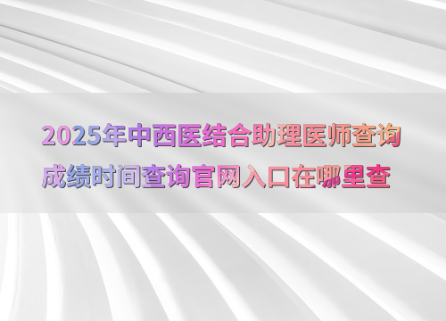 2025年中西医助理医师综合考试成绩已于9月23日公布,考生可立即查询。