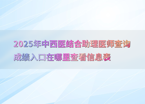 2025年中西医结合助理医师综合考试成绩已于9月23日公布。
