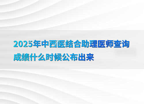 2025年中西医结合助理医师综合考试成绩已于9月23日公布。