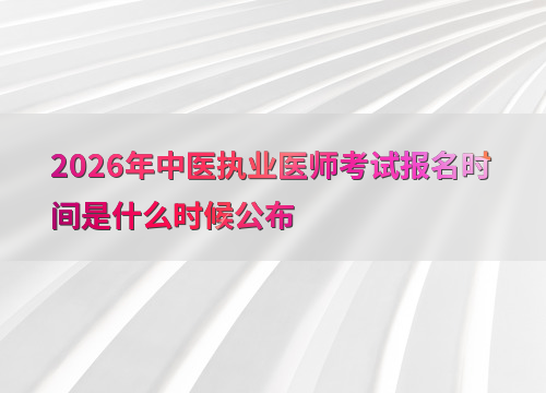 2026年中医执业医师考试报名时间预计在1月至2月期间公布,参考往年安排(如2025年为2月8日至2月21日),建议考生密切关注国家医学考试网(www.nmec.org.cn)公告。