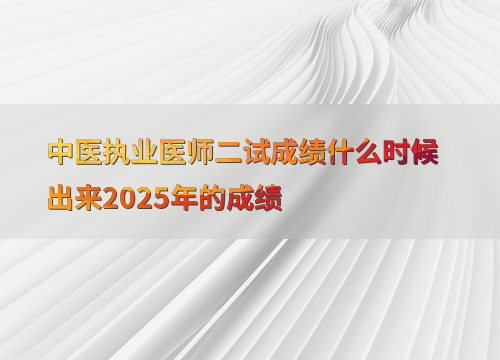 2025年中医执业医师一年两试成绩预计在12月初公布,参考近年时间规律(如2024年11月30日、2023年12月8日),考生可提前做好查询准备。
