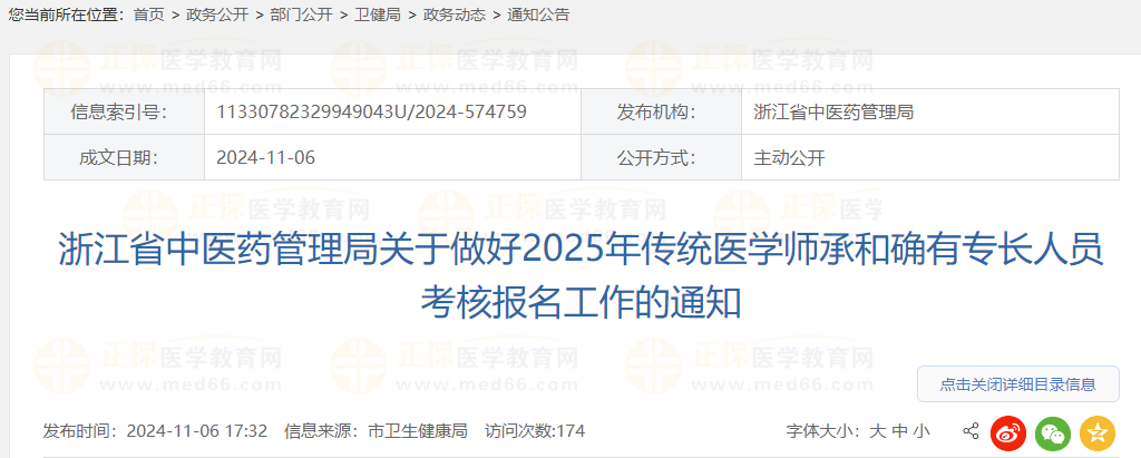 浙江省中医药管理局关于做好2025年传统医学师承和确有专长人员考核报名工作的通知